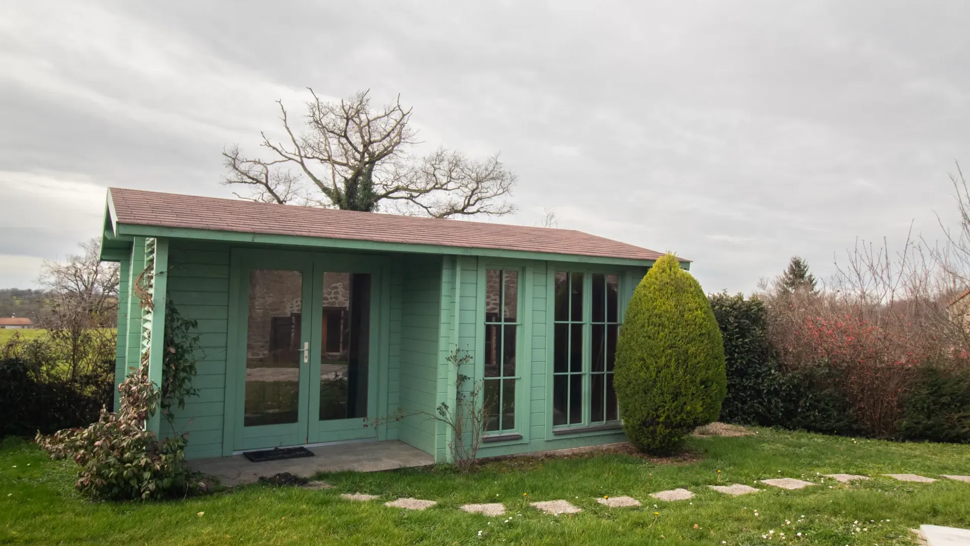 La maison est entourée d’un jardin avec pelouse, parfait pour profiter de l’extérieur. Un barbecue au charbon de bois et un salon de jardin permettent de partager facilement des repas en plein air. Plusieurs parasols offrent de l’ombre pendant les journées ensoleillées, et un abri de jardin est également à disposition.